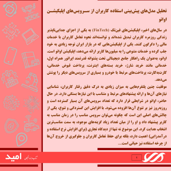 عنوان مقاله: تحلیل مدل‌های پیش‌بینی استفاده کاربران از سرویس‌های اپلیکیشن اوانو